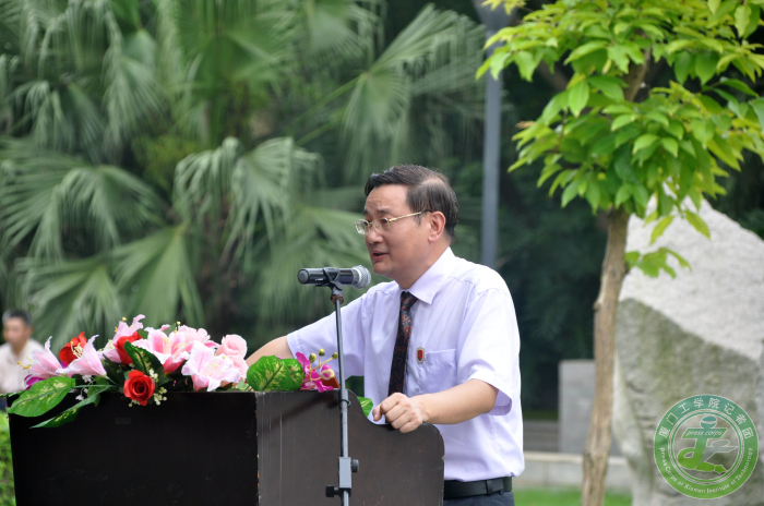 628上午八点二十,在我校校友园进行了2014届毕业生捐赠雕塑剪彩仪式。仪式由校长助理兼校部事务处处长刘志强教授主持。出席本次剪彩仪式的有校长蔡远利教授,副校长田晓皋教授,学校中层以上干部,教职员工代表,2014届毕业生代表及在校生代表。