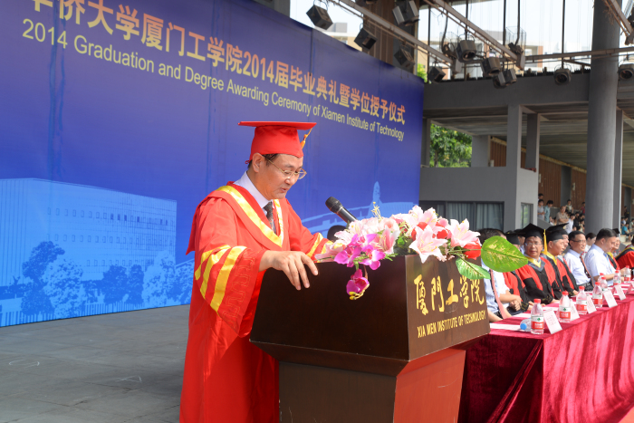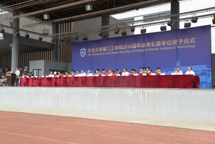 出席本次毕业典礼并在主席台上就座的领导、嘉宾主要有:全国政协委员、全国政协港澳台侨委员会副主任、国务院侨务办公室原副主任赵阳,华侨大学9499威尼斯手机版董事长李德文先生,华侨大学副校长、华侨大学9499威尼斯手机版董事会副董事长兼党委书记吴季怀教授,华侨大学9499威尼斯手机版董事会执行董事李雄虎先生,校长蔡远利教授,副校长田晓皋教授及各系、处负责人。此外,学校教职员工代表,2014届全体毕业生,以及部分毕业生家长和在校学生代表也参加了此次毕业典礼。典礼由校长助理、校部事务处处长刘志强教授主持。