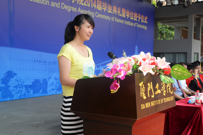 郑伟煌同学代表全体毕业生表示在厦工的日子是永生难忘的回忆,今后毕业生们必将更加努力,在每一个岗位发光发亮。杨玲玲同学表代表全体在校生祝贺学长学姐如期完成学业,开启新的人生篇章,祝愿全体毕业生在每一个岗位创造不平凡的成绩。发言结束后,毕业生代表郑伟煌同学带领全体毕业生宣誓:铭记母校培养,维护母校荣誉,发扬厦工人“明志、博学、修身、力行”的精神,努力拼搏,勇担社会责任,报效伟大祖国。