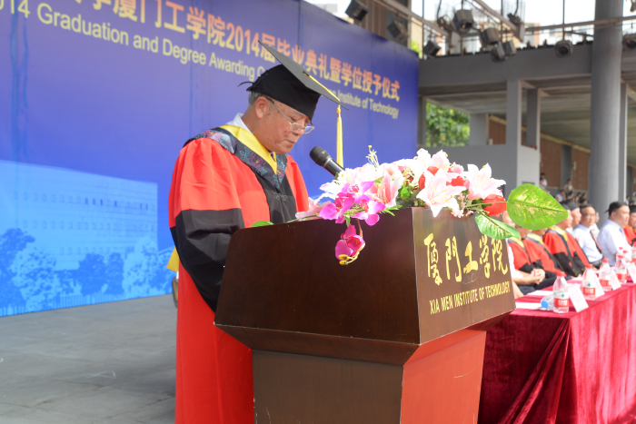 校长蔡远利教授在致辞中向2014届所有毕业生致以热烈的祝贺,他表示毕业是再次扬帆,毕业是一段人生旅程的结束,也是另一段人生征程的开始。最后,他寄语全体毕业生们三句话:人之立身,所贵者唯在德行;爱岗敬业,不要轻言放弃;要有鸿鹄之志,目标远大,心存宽广,努力回馈社会。