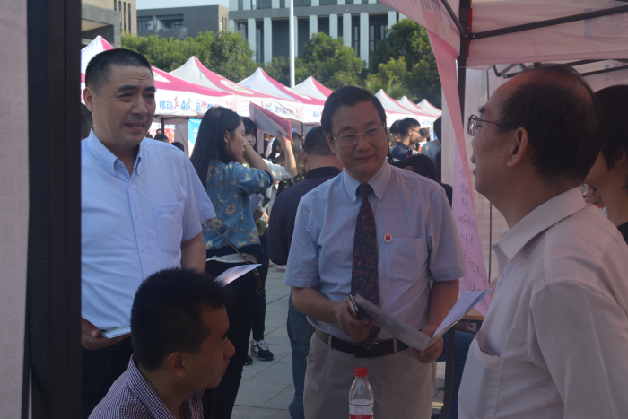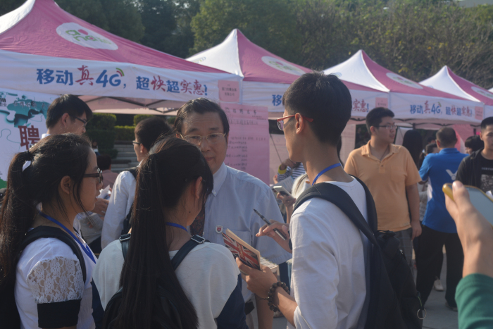 为切实做好我校毕业生就业工作,11月4日下午,我校2015届毕业生秋季大型校园招聘会在学校孔子广场举行。本次招聘会由厦门人才服务中心和我院联合主办,共有包括厦门市三安光电股份有限公司、厦门太古可口可乐饮料有限公司、鸿星尔克厦门分公司在内的200家企业参会,为毕业生提供就业岗位6000余个。本次招聘会是目前为止厦门地区高校举办最早、我校举办规模最大、招聘岗位最多的一场招聘会,招聘单位主要以实际应用型人才招聘为主,正好与我院学生培养目标相契合,从而更好地为毕业生和企业架起了双向交流的平台。招聘会期间,董事长李德文先生、校长蔡远利教授、厦门人才服务中心程常建主任、各毕业生系主任、相关处室负责人、党总支(支部)副书记、辅导员等莅临现场指导。