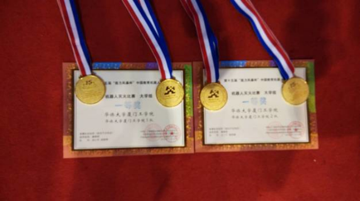 来自我校CDIO创新实践中心组织的两支代表队参加了本大赛角逐最激烈的灭火机器人大赛项目。在面对来自全国各地的有力竞争对手时,参与比赛的王一丁、郭伟锋和翁心宇、施新辉同学两支队伍凭借者扎实的功底和稳定的发挥及不懈的努力在众多灭火机器人竞赛项目组中脱颖而出,最终双双成功斩获了一等奖,取得骄人的成绩。