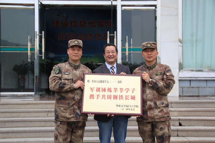 该部队团长、政委率团领导及部分官兵代表,亲切接见了访问团一行。在团领导陪同下参观了部队团史馆,听取了部队发展历史及光荣事迹的介绍。蔡远利校长应邀在嘉宾簿上题赠“向英雄团学习”,并代表学院向部队赠送纪念品。之后观看了部队建设录像,参观部队营区,体验靶场射击等,同时心理中心蔡丽煌老师也给部队官兵带去了一场精彩的心理健康讲座。