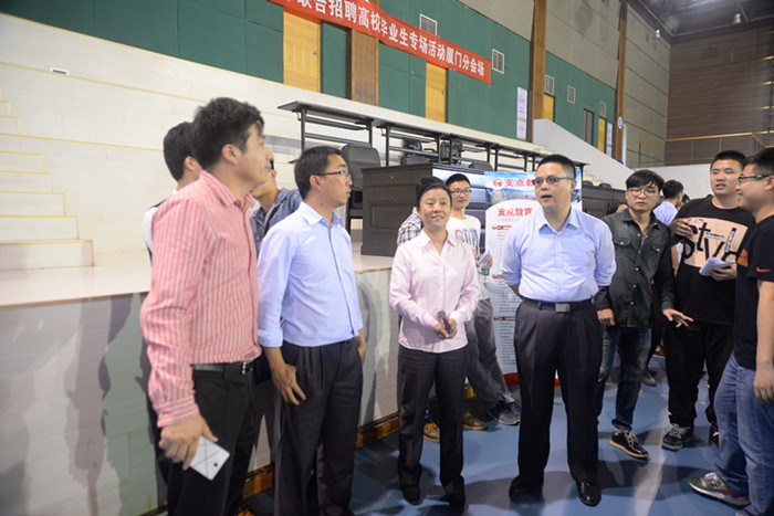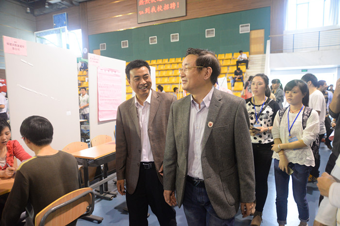 蔡远利校长亲临招聘会现场并听取招就处陈炜处长的招聘会情况汇报