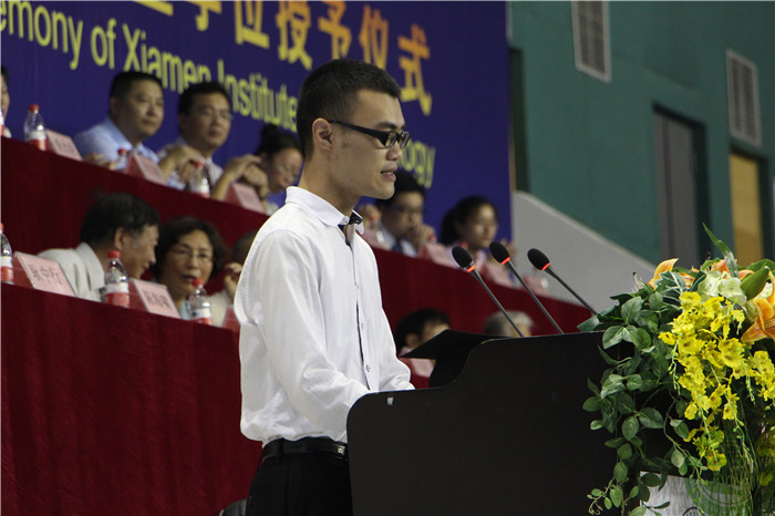 毕业生代表代王盛娇同学代表全体毕业生表达了对母校、老师的感激之情,并表示毕业后一定会恪守校训,为母校争光。
