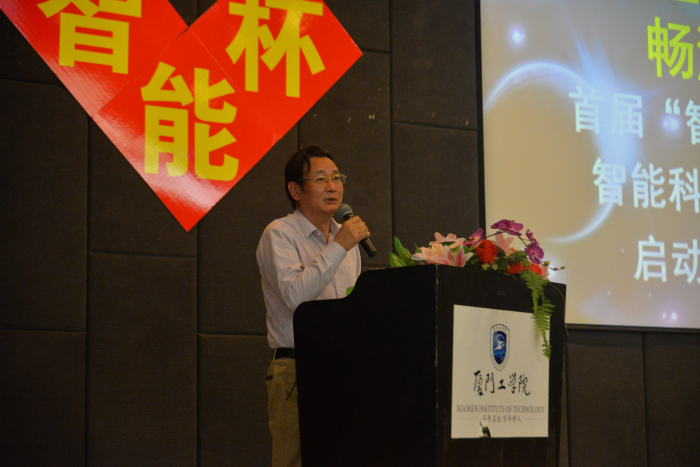 颁奖典礼首先由蔡远利校长致辞,蔡远利校长对这次学校举办的“智能杯”大学生智能科技大赛给予了很高的评价。他讲到学校在开展博雅教育时非常重视第二课堂的教学,参加智能科技活动就是第二课堂的一种形式,学生不仅可以在参赛过程中锻炼自己、认识到更多的朋友,同时这也是人生宝贵的经验。蔡校长认为本次“智能杯”科技大赛的作品相比以往的作品在技术含量上有了很大的提升,因此他也非常鼓励学生积极将自己的好作品申请为专利。同时对踊跃参加本届大赛的参赛学生和指导老师表示赞赏,希望今后有更多的学生及教师参与到学校的各类大赛中。参赛学生代表赖伟华同学以及指导教师代表吴平平老师也与大家分享了参加智能科技大赛的心得及体会。