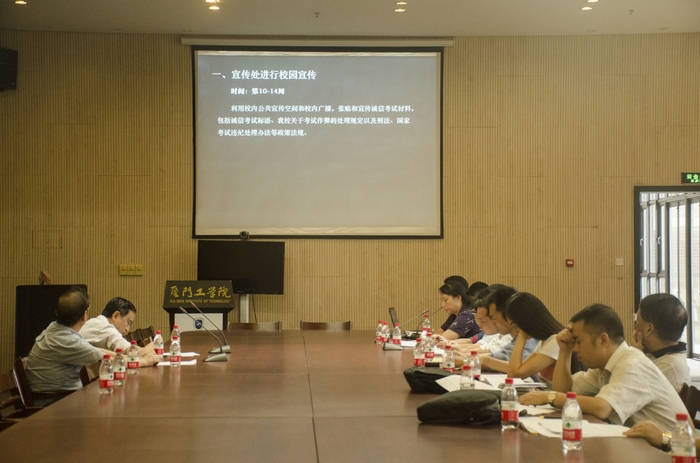 同时,为从源头上杜绝同学们考试违纪的行为,学校将加大诚信考试宣传教育力度,学校宣传处、教学与科研处、学工处和各书院、班级、学生社团、个人共同行动起来,在校园内营造“诚信考试,诚信做人”的氛围。会议要求,在诚信考试教育中不应只关注于那些被发现了不诚信行为的学生,更要关注于未被发现的学生。学校教师也要行动起来,在课堂教育中不断培养学生诚信应考的意识,双管齐下以确保考试纪律的有序进行。蔡校长在发言中强调,近年来,国家对于考试纪律的约束不断加强,社会形势对每个大学生的诚信品德提出更高要求,“诚信考试”是我校优良的学风建设的重要一环,希望学校各部门同心协力,做好宣传教育工作。