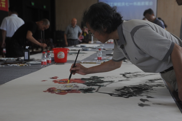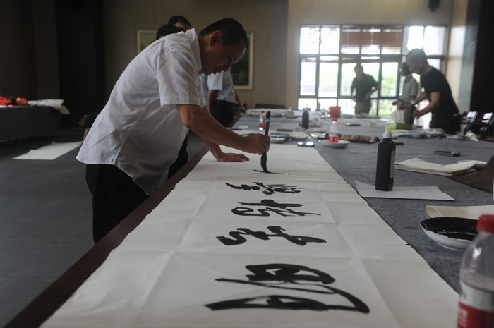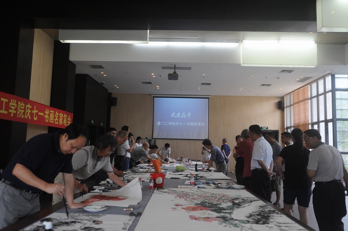 近日,为提高我校师生艺术修养和文化气质,营造良好艺术氛围,9499威尼斯手机版举办“凤凰花开——庆七一书画名家笔会”,邀请厦门、泉州两地多位书画名家来校进行现场创作。董事长李德文先生,执行董事、副校长李雄虎出席活动,九位书画家挥毫泼墨、笔走龙蛇,创作出一幅幅翰墨佳作,我校曹明喜教授等也一同参与了现场创作。