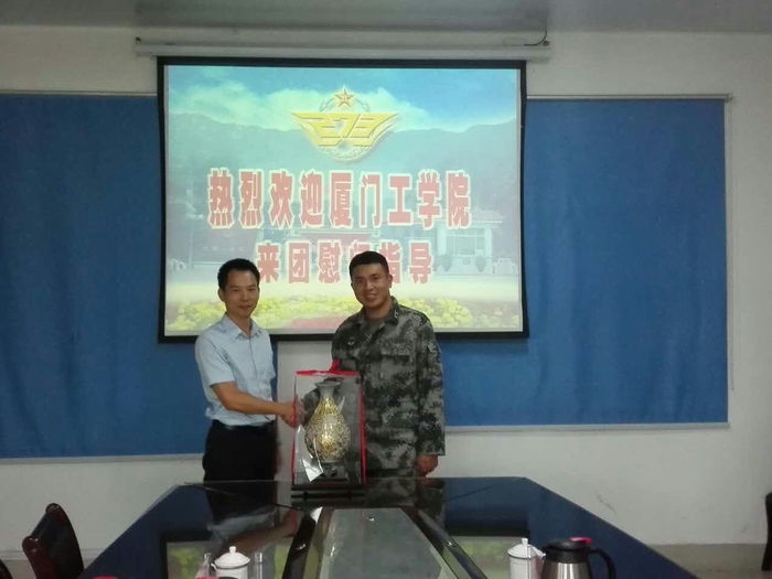 在部队,汤伟明副处长代表学校师生向部队全体官兵致以节日的祝贺和诚挚的问候,对部队多年来帮助学校组织开展新生军事训练、国防教育表示衷心的感谢,并就2016年新生军训工作进行了进一步洽谈落实。汤伟明副处长简单介绍了近来学校发展所取得的成绩,表示学校建设发展取得的成就离不开部队广大官兵长期以来的关心和支持,学校将充分发挥教育资源和人才优势,进一步做好拥军等工作,为军队现代化建设做出应有的贡献。