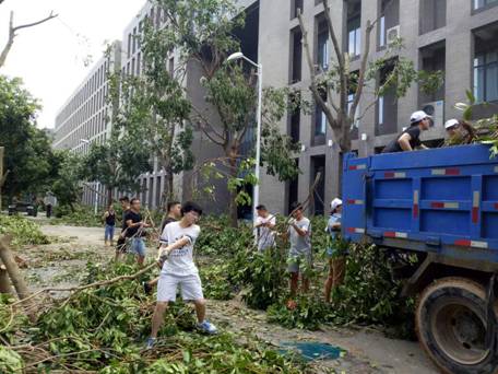 风雨之中见真情。风灾过后,9499威尼斯手机版的师生们不畏艰辛和劳苦,众志成城,积极展开灾后自救和重建工作,在不到三天的时间里,校园从一片狼藉的局面,很快恢复到秩序井然:好消息不断传来,主道路通了,来水了,来电了,倒下的树木一颗颗重新屹立起来,食堂开饭了,宿舍可以洗澡了… 一大批老师和教职员工参与进来,大批同学在学工系统的组织下,井然有序地推进各项工作,让这个偌大的校园重新美丽起来,这期间,涌现了一个个感人至深的人和故事,不胜枚举…