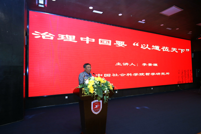 学校开设博雅大讲堂,经常邀请国内外著名专家开国学讲座,也请学校的导师和学生代表讲自己和身边的故事。修身养性,培养学生理想精神、情操品德,塑造健全的人格。学校的建筑物是现代风格的,但学校的许多文化设置又都具有浓郁的传统文化色彩。比如,学校建设了大型的“孔子广场”,树立孔子石雕像,建设规模宏大的孔子事迹群雕,学校十几幢大厦都以“三纲八目”命名,如厚德大厦、至善大厦、明德大厦等等,浓厚传统文化韵味在学校四处洋溢,熏陶着莘莘学子。