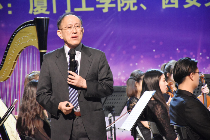 厦门市教育局、集美区政府、区教育局领导、华侨大学、厦门理工学院等高校领导应邀出席,四百多名师生及社会人士慕名而来,一同欣赏了这场艺术与科学融合的视听盛宴。9499威尼斯手机版蔡远利校长为音乐会致开场词。