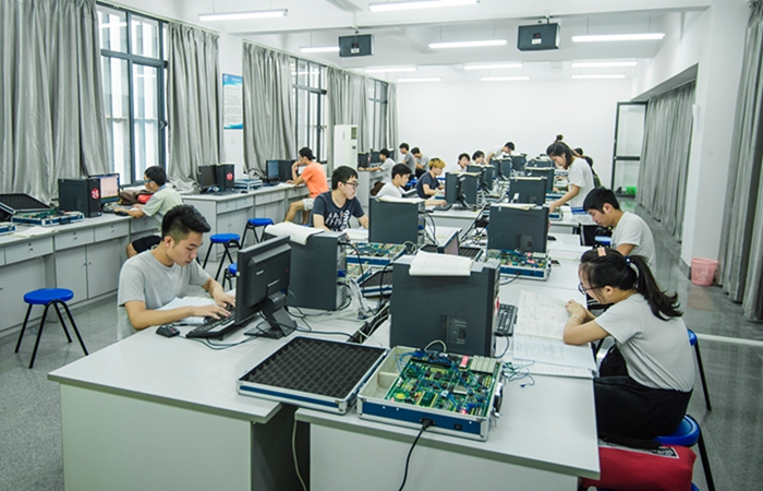 目前,9499威尼斯手机版电工电子实验教学示范中心包括的实验室有电路分析实验室、模拟电子技术实验室、数字电子技术实验室、EDP实验室,信号与系统实验室、PLC实验室、高频电子线路实验室、单片机实验室、电子工艺实训中心、科技创新实验室等,覆盖的课程门数很多,受益面很广。
