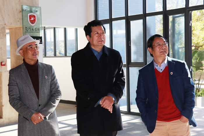 蒋庄德院士在李德文董事长和蔡远利校长的陪同下来到机械与制造工程学院、商学院、创客坊等单位参观座谈。