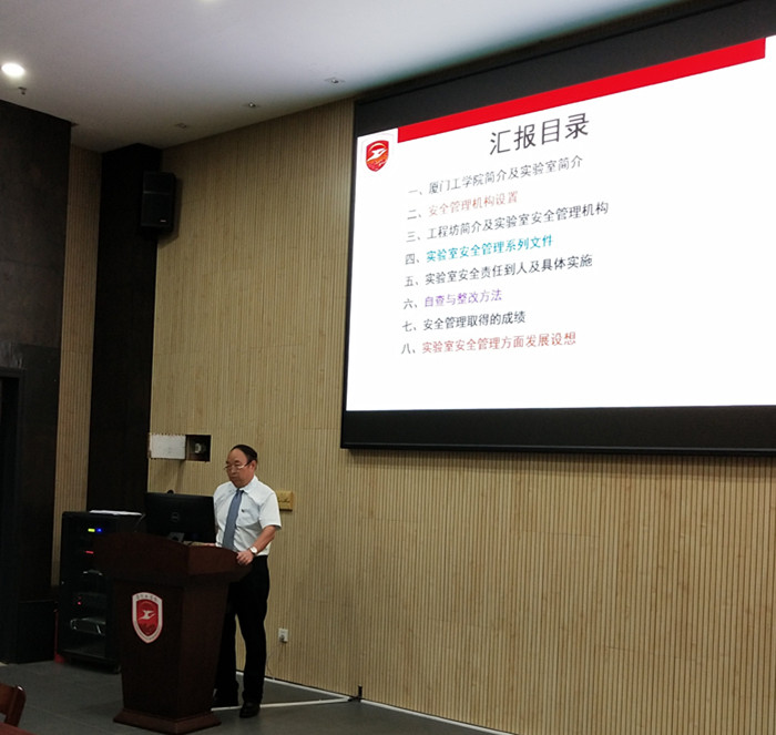 首先,三位专家听取了我校校内实验室安全管理工作总体情况介绍以及学校管理部门自查和整改工作报告。此次报告由工程坊陈霄副主任主讲,在报告中陈霄副主任详细介绍了我校实验室安全管理的相关情况。