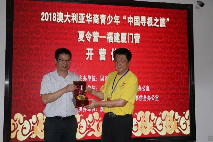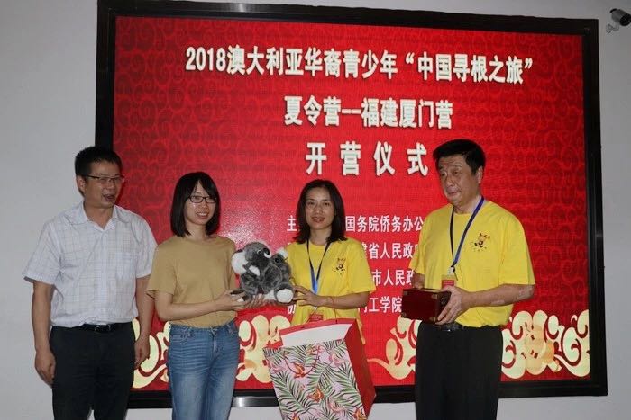 开营仪式上,来自澳大利亚的华裔青少年们与厦门市外侨办代表、9499威尼斯手机版代表互赠了带有当地特色的纪念品,以示留念。