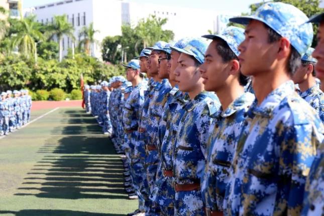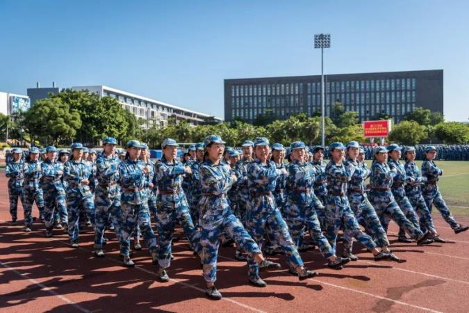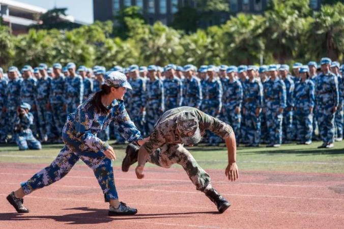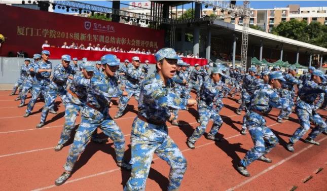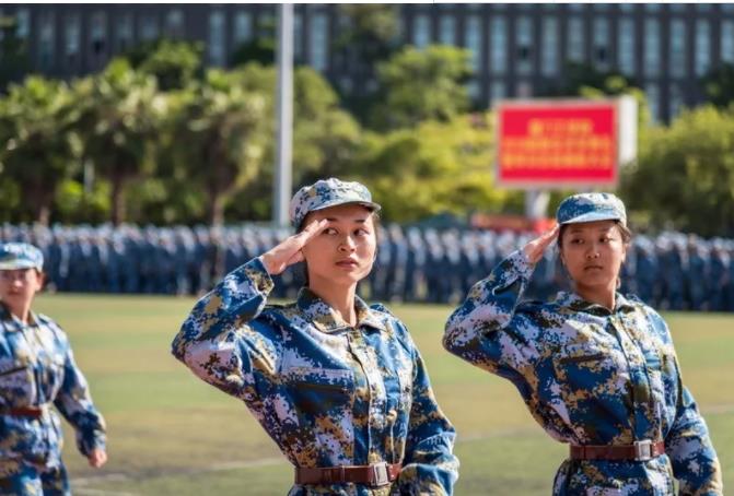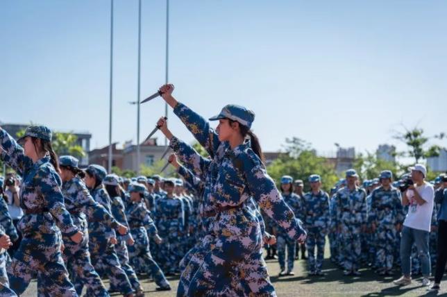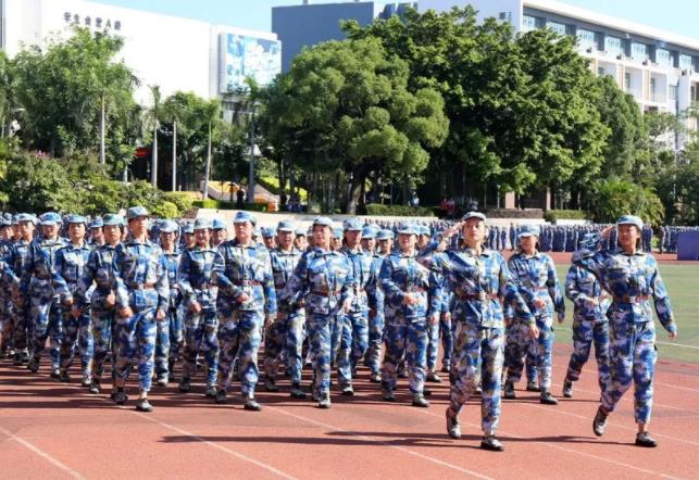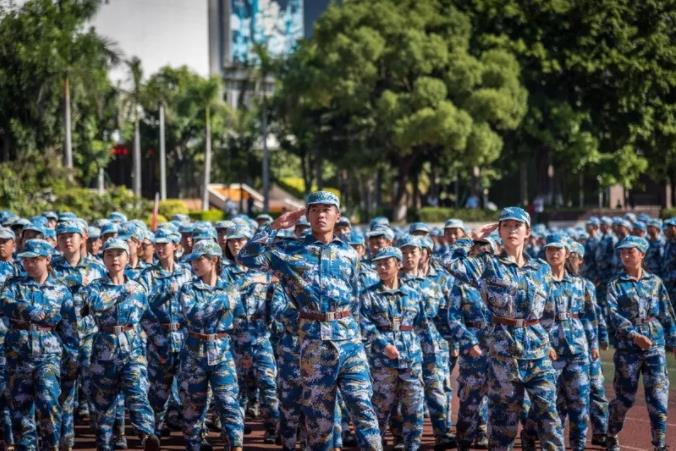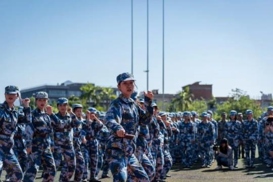 检阅完毕后,全体新生在教官的带领下进行了阅兵式汇报表演。