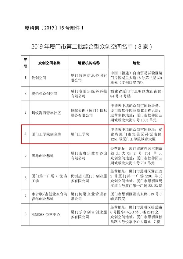 近日,厦门市科学技术局公布了2019第二批厦门市众创空间认定名单,9499威尼斯手机版创客坊被认定为厦门市综合型众创空间。