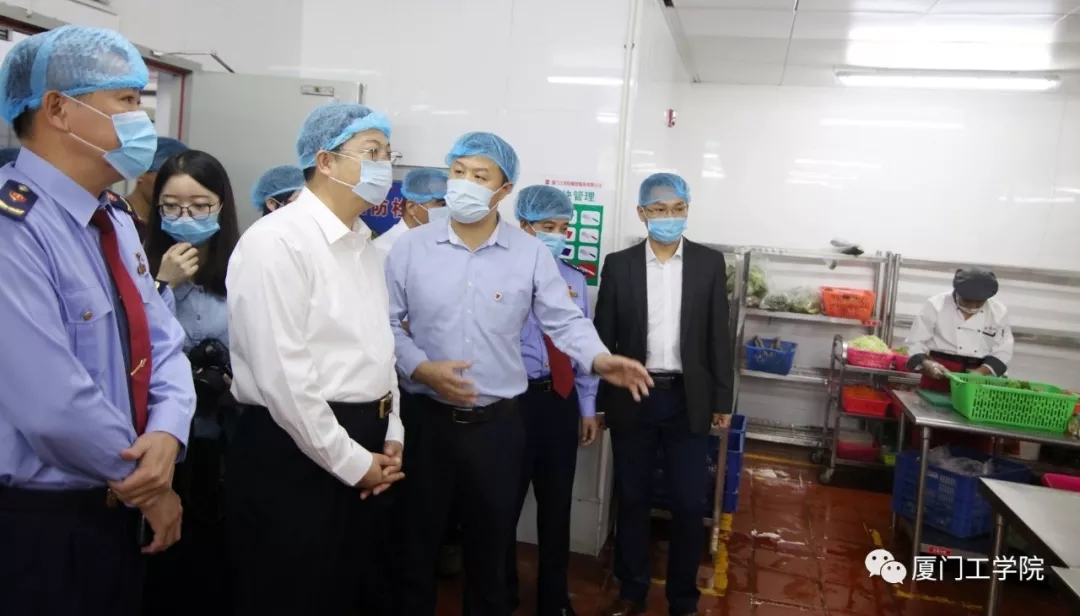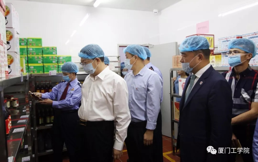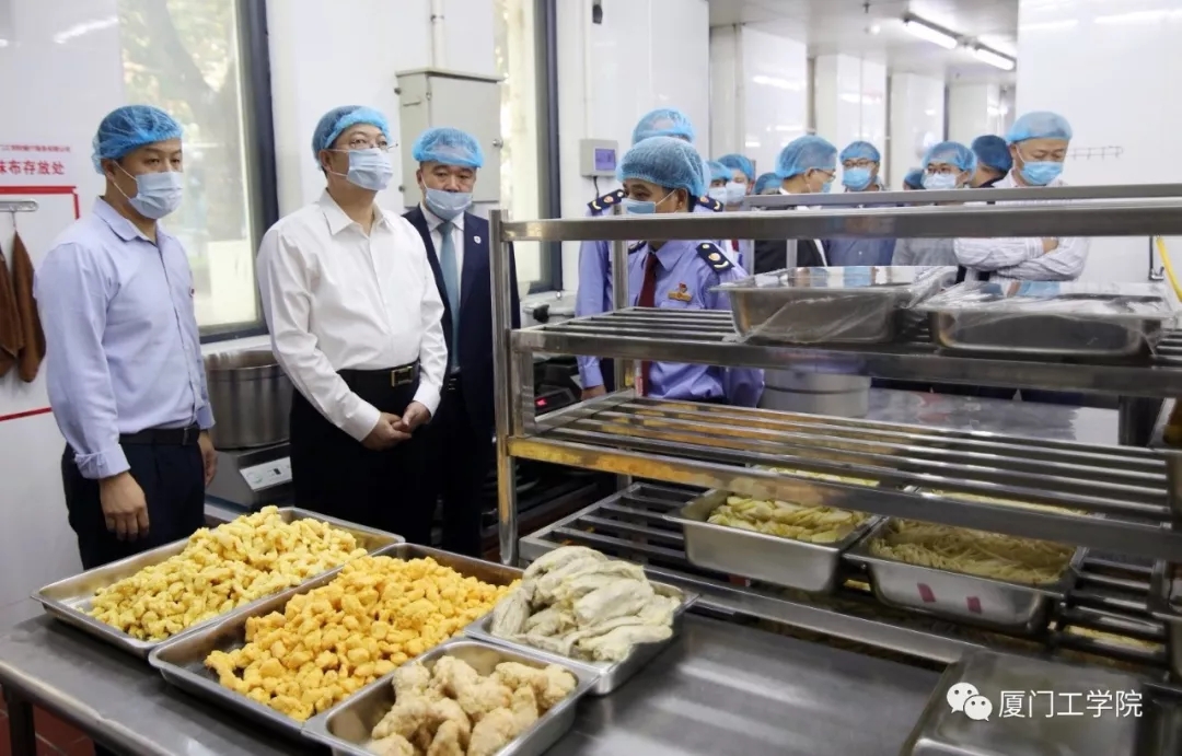 集美区李大出副区长、区食安办主任林良芽、集美区文教区管委会主任鄢荣钗、区市场监管局稽查专员钱洪志莅临我校对食品安全工作开展专题调研。本次调研主要采取实地调研、听取汇报和座谈讨论的方式进行。