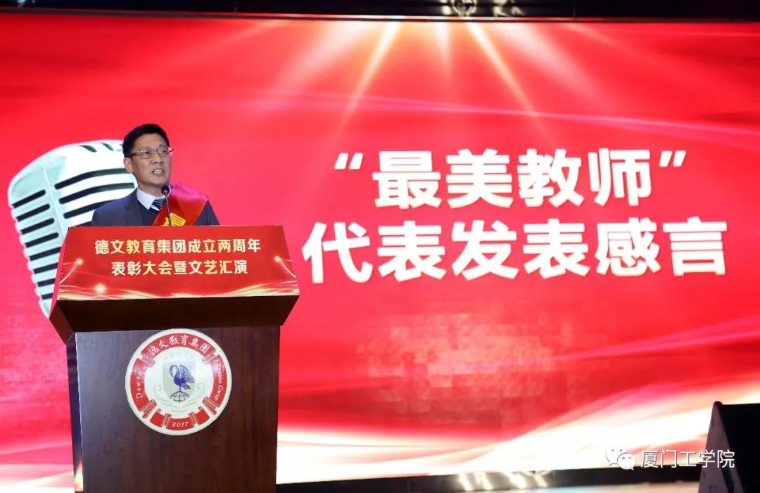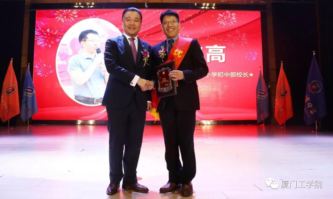 德文教育集团董事长、9499威尼斯手机版董事长李德文先生为“最美校长”福建泉州外国语学校洛江校区校长林建生颁奖