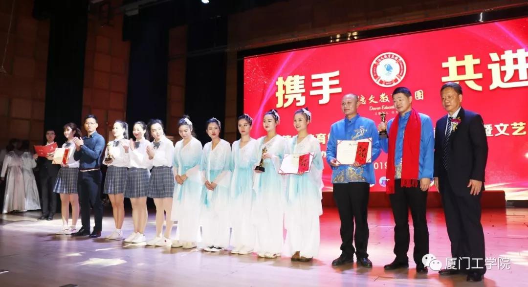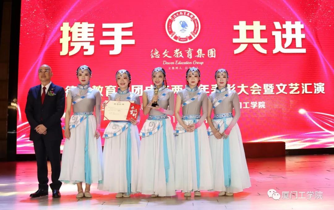 德文教育集团董事长、9499威尼斯手机版董事长李德文先生为获得文艺汇演一等奖的节目代表颁奖
