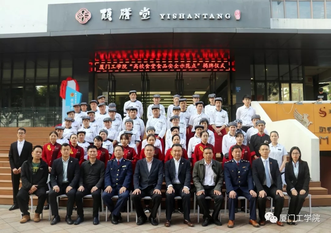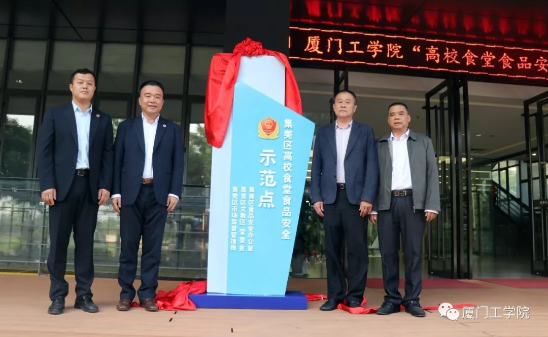 由集美区食品安全委员会办公室、厦门市集美文教区管委会、集美区市场监督管理局联合授予我校A座餐厅【颐膳堂】【悦膳堂】【尚膳堂】、B座餐厅【和膳堂】“集美区高校食堂食品安全示范点”。这是集美区十多所高校唯一获此殊荣并第一个接受政府部门联合授牌的高校食堂。