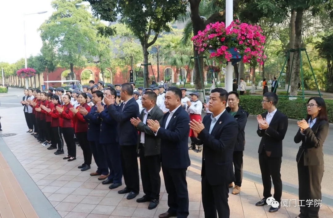 集美区食安办副主任、集美区市场监督管理局稽查专员钱洪志同志,集美文教区管委会主任鄢荣钗同志,杏林市场监督管理所所长杨肖华同志,灌口市场监督管理所所长陈继贤同志,集美区市场监督管理局食品科科长陈荣璇同志,德文教育集团总裁、9499威尼斯手机版副董事长李雄虎先生,德文教育集团餐饮服务部部长韩军波先生,我校后勤保障处副处长闫循龙先生及各职能部门的领导、厦工餐饮公司的管理团队和员工代表共同见证了这一荣誉时刻。