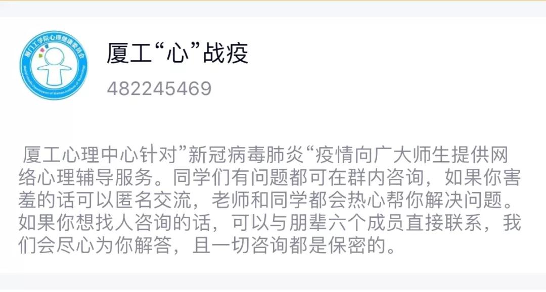 同时同学们有问题也可加入QQ群“厦工‘心’战疫”(群号:482245469)。