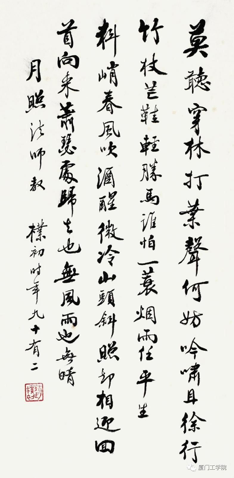 莫听穿林打叶声,何妨吟啸且徐行。竹杖芒鞋轻胜马,谁怕?一蓑烟雨任平生。