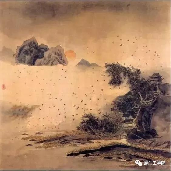 会稽山上,云朵淡淡的像是水墨画中轻抹上去的一半;越州城外,衰草连天,无穷无际。城门楼上的号角声,时断时续。在北归的客船上,举杯共饮,聊以话别。回首多少情事,此刻已化作缕缕烟云散失而去。眼前夕阳西下,万点寒鸦点缀着天空,一弯流水围绕着孤村。