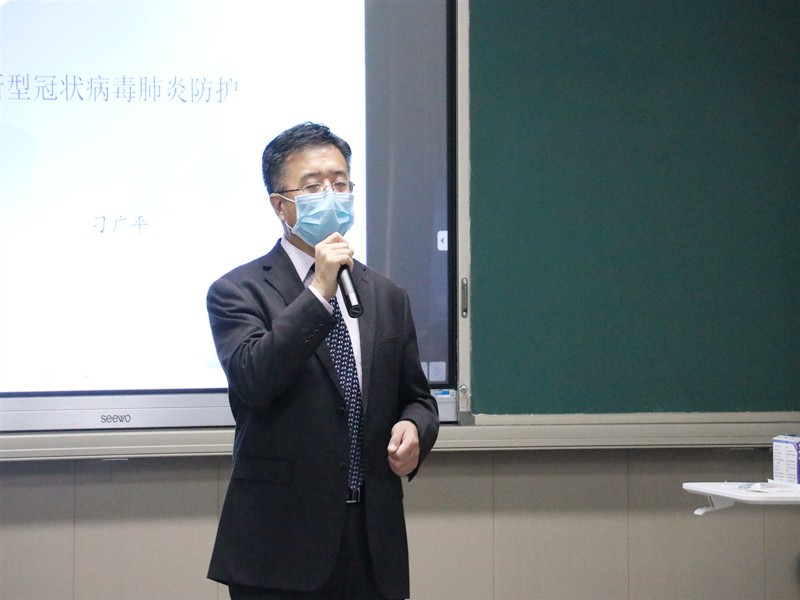 为进一步做好新冠肺炎疫情防控工作,扎实开展疫情防控卫生防护培训。4月2日,后勤保障处根据集团(2020)12号《关于做好集团各成员单位新冠肺炎疫情防控知识和技能培训工作的通知》要求,邀请校医院刁广平副主任开展预防新冠肺炎卫生防护知识和技能培训工作。培训在正心120 智慧教室进行。教育集团各单位全体医务工作者、保育员、书院及社区导师、保洁及保卫管理人员等一线防疫人员参加此次培训。