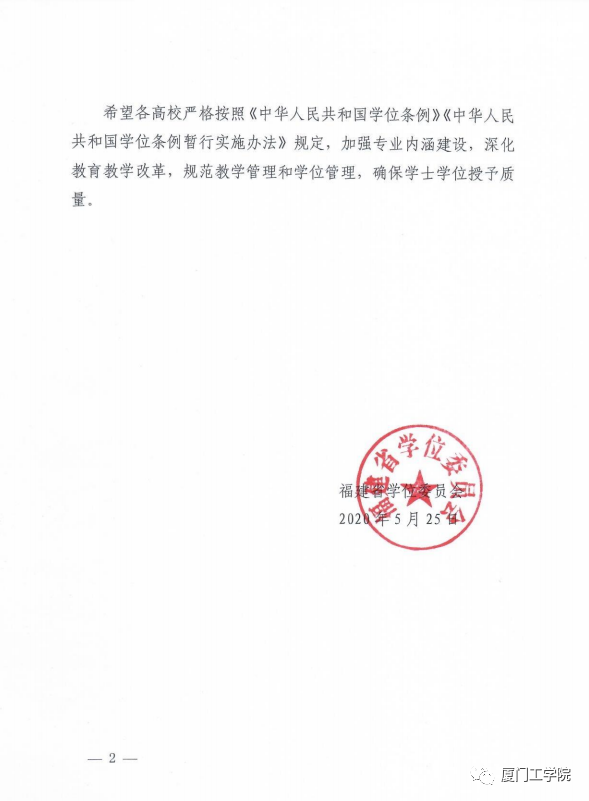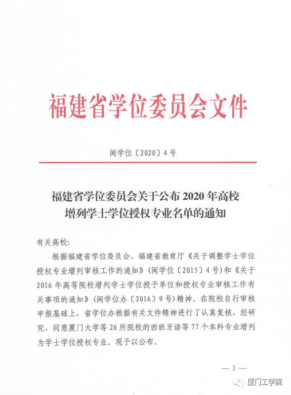 5月25日,福建省学位委员会印发《福建省学位委员会关于公布2020高校增列学士学位授权专业名单的通知》(闽学位〔2020〕4号),同意我校信息与计算科学增列为理学学士学位授予专业;机械电子工程、物联网工程增列为工学学士授予专业。