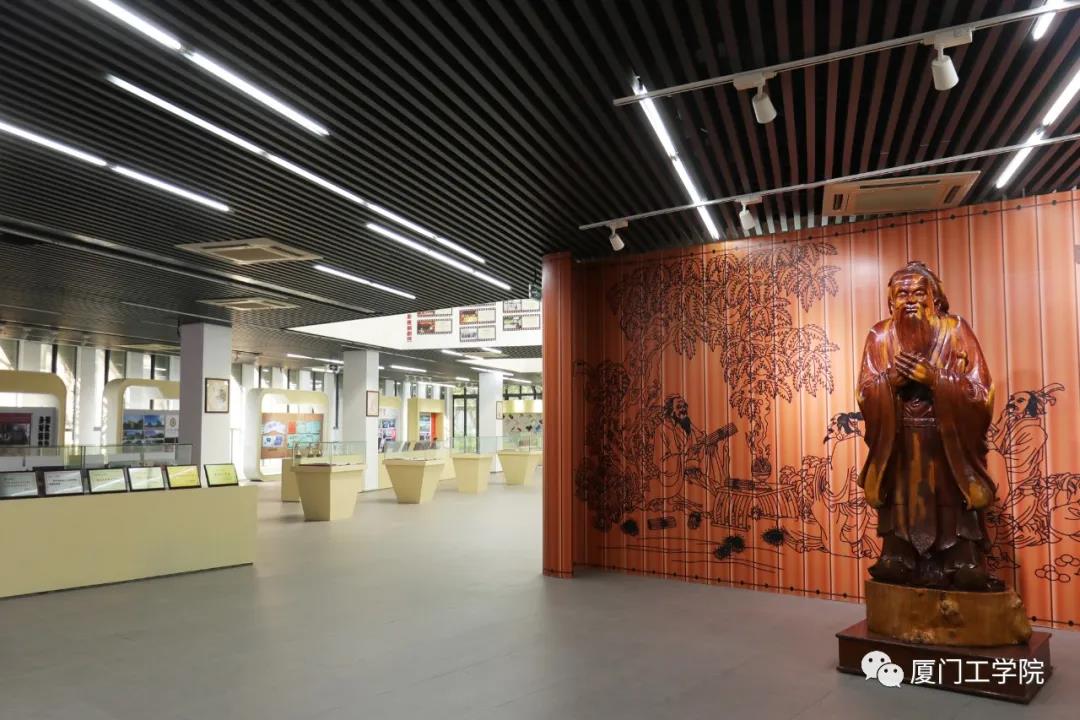 展览馆与音乐厅、学生交流中心处于同一建筑群的另一端。建筑面积为1.2万平米。展览馆的正门入口处摆放着一尊孔子木质雕像,象征我校推崇儒家文化,注重传统文化教育。