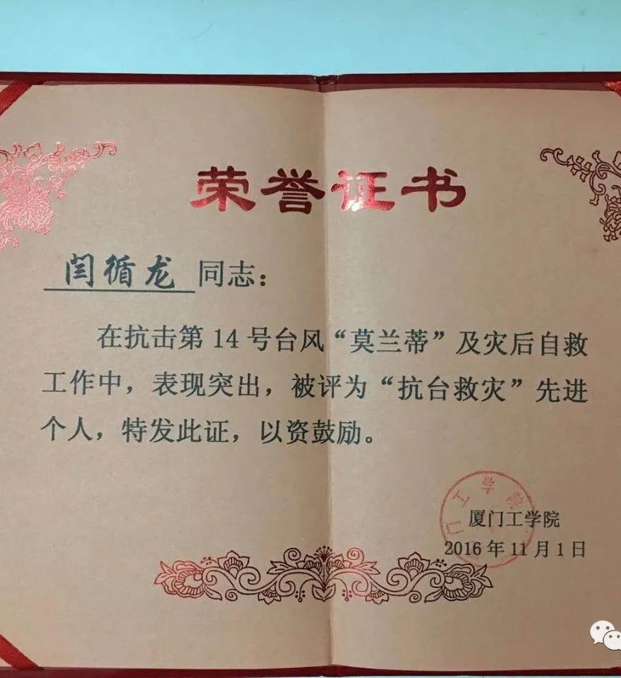 2016年“莫兰蒂”来袭时,教职工宿舍楼的地下车库排水系统出现故障,几十部车面临泡水危险,他身先士卒,扛沙袋堵洪水,与同事们奋战一整夜,天亮后又马上投入到全校的灾后自救。在协助集团下属单位厦工附属学校筹建的最后一天冲刺阶段,半夜十二点时家人突然打来电话——他爱人预产期提前,需要临时住院。他内心挣扎一番,但还是坚持现场指挥至凌晨2点,直到最后一班物资调配到位后,才匆忙赶往医院,等他到的时候,孩子已经出生了,他笑称这是他与学校的情缘。今年年初,抗击新冠肺炎,根据学校防控要求,他大年除夕夜就返校协调重点地区返校人员隔离事宜。在全市各街道小区戒严的情况下,自驾车联系供货单位,只要有货就马上去“抢”,顶着巨大压力在极其困难的情况下保障了学校防控防疫物资的采购储备。他坦言,疫情防控期间出门后每次回家开门的瞬间是最煎熬的,因为他内心也恐惧,担心自己是否接触了病毒,不知道自己会不会把感染病毒的风险带给家人。同时,家人的理解和支持,也是支撑他的强大动力!