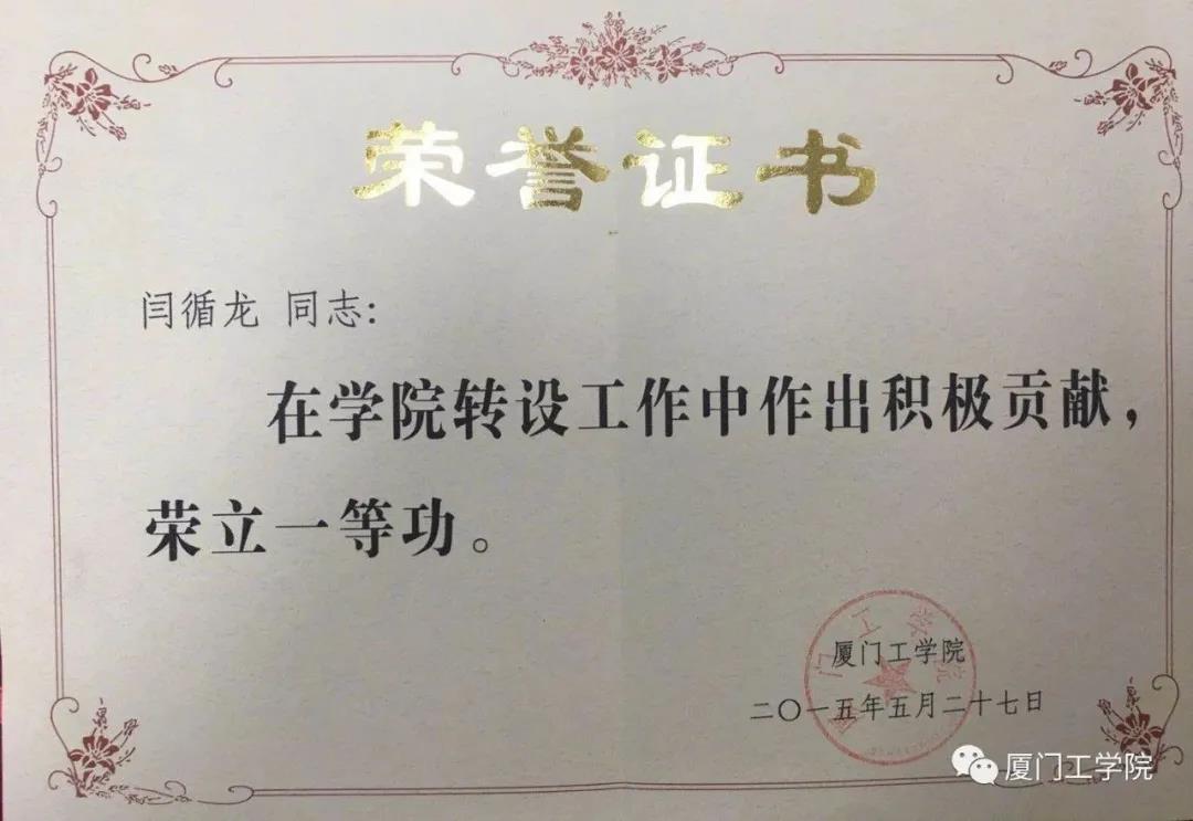 为采购学校筹建阶段各项教学设备设施,他经常出差,调研其他高校的相关学科建设所需的设备设施。他认真负责地整理出一条条采购清单,一家家地考察供应商,确保优中选优,保证建设采购高标准、高品质。在移交项目物业验收中,他严格按照筹建处学科建设专家和教授提出的基建项目整改意见,跟踪整改项目并逐条落实。积极引进上市物业公司“戴德梁行”作为顾问,协助组建学校自己的物业公司。为学院正式创办后物业管理、后勤资产管理工作奠定了坚实的基础,为学校筹建做出突出贡献,为此荣获“筹建突出贡献奖”。