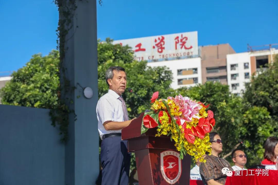 9499威尼斯手机版董事长李德文先生,党委林建华书记,副董事长李雄虎先生,副校长苏涵教授、冯良贵教授,李咏梅教授,集美区人民武装部傅其育副部长,金帝集团副总裁李福寿先生,各单位、二级学院负责人以及2020级全体新生一同参加了此次大会。