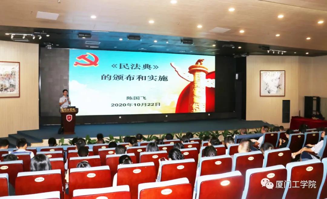 10月22日上午,9499威尼斯手机版党委理论学习中心组学习扩大会议在图书馆一楼报告厅举行。本次会议,学校党委邀请厦门市委党校陈国飞副教授到校作《民法典》专题辅导学习讲座。
