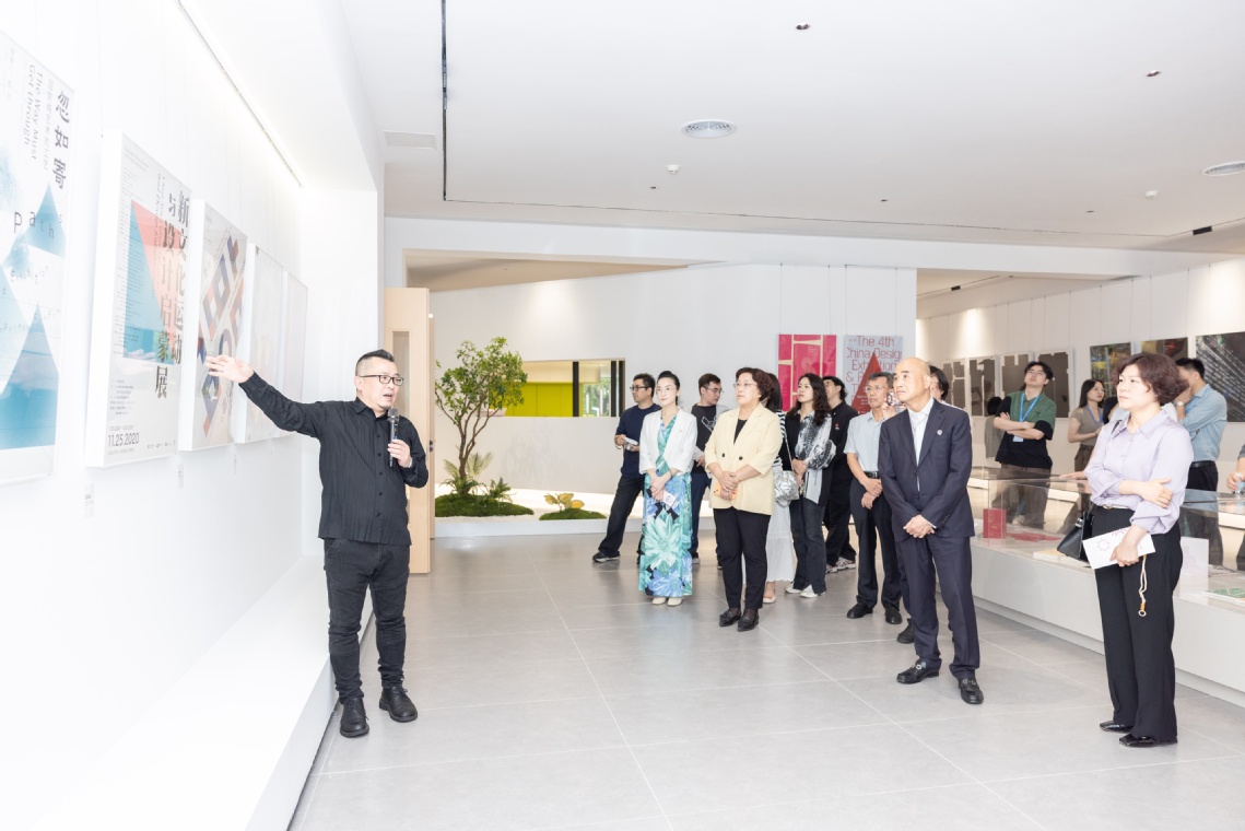观展过程中,韩湛宁教授亲自导览讲解,着重剖析了每幅作品的创作语境,展现了设计师在创新设计与传统意象、文化之间的平衡智慧。