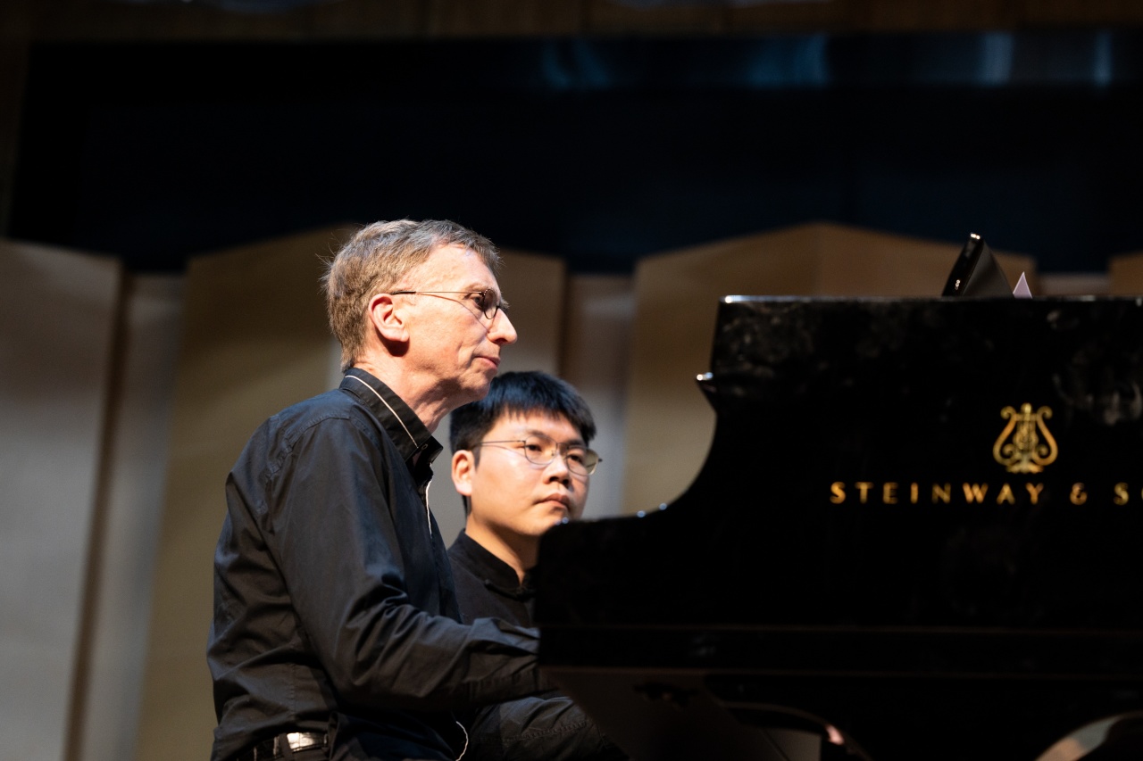 叶孟儒教授作为备受瞩目的台湾钢琴家,凭借着深厚的艺术造诣与独特风格,让现场师生沉浸在音乐的美妙世界中。叶孟儒演奏的曲目涵盖多元,从古典主义时期的作品,到浪漫主义的经典乐章,都在他的演绎下焕发出独特光彩。在弹奏古典主义乐曲时,他精准地把握节奏与结构,清晰的音符颗粒感,将作品的严谨规整展现得淋漓尽致,仿佛带领听众穿越时空,感受那个时代音乐的理性之美;演奏浪漫主义作品时,他又能充分释放情感,强弱变化收放自如,把作曲家内心的炽热情感与自由奔放的精神,毫无保留地传递给观众,使大家产生强烈共鸣。
