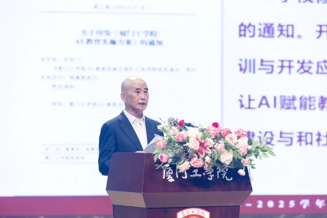 “长风破浪会有时,直挂云帆济沧海。”“明知征途有艰难,越是艰难越向前。”这些豪言壮语是体现“厦工精神、厦工文化、厦工气象”的生动写照。历史的车轮滚滚向前不可阻挡,我们终将迎来人工智能高速发展的新时代,机遇可遇不可求,可谓是天赐良机。学校希望全体师生员工团结一致、同心同德、抓住机遇、迎难而上、克服困难、接受挑战、守正开新,共同奔赴人工智能的新赛道,不断注入向前的动力,以更加开放的心态、务实的行动持续领跑,推动先进教育理念与优质技术融入人才培养的全过程,构建数智时代人才生态体系,为国家培养出更多更优秀人才,共绘教育强国新篇章。