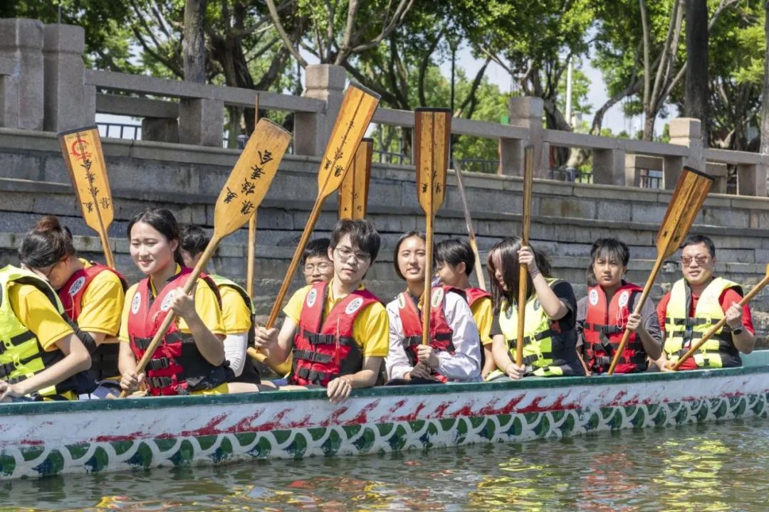 赛龙舟活动更是让营员们热血沸腾。西班牙营员刘曦激动地描述道,所有人齐心协力划动船桨,龙舟如离弦之箭般向前冲刺,场面壮观而有趣。这项传统运动不仅锻炼了身体,更展现了团结协作的精神,让她深受感动和敬佩。缅甸营员李世泽也回忆道:预备!各队注意!我握紧桨柄的瞬间,熟悉的肌肉记忆立刻苏醒——这已不是第一次划龙舟,但跟几个国家的同学组一队还头一次。不同语言的交集中,在教练的一声:“划!”之后,大家喊着共同的口号,在浪花飞溅中奇妙地交织成新的节奏,让我们这些在外的龙之传人,在这一刻我们找回同一种心跳的频率。