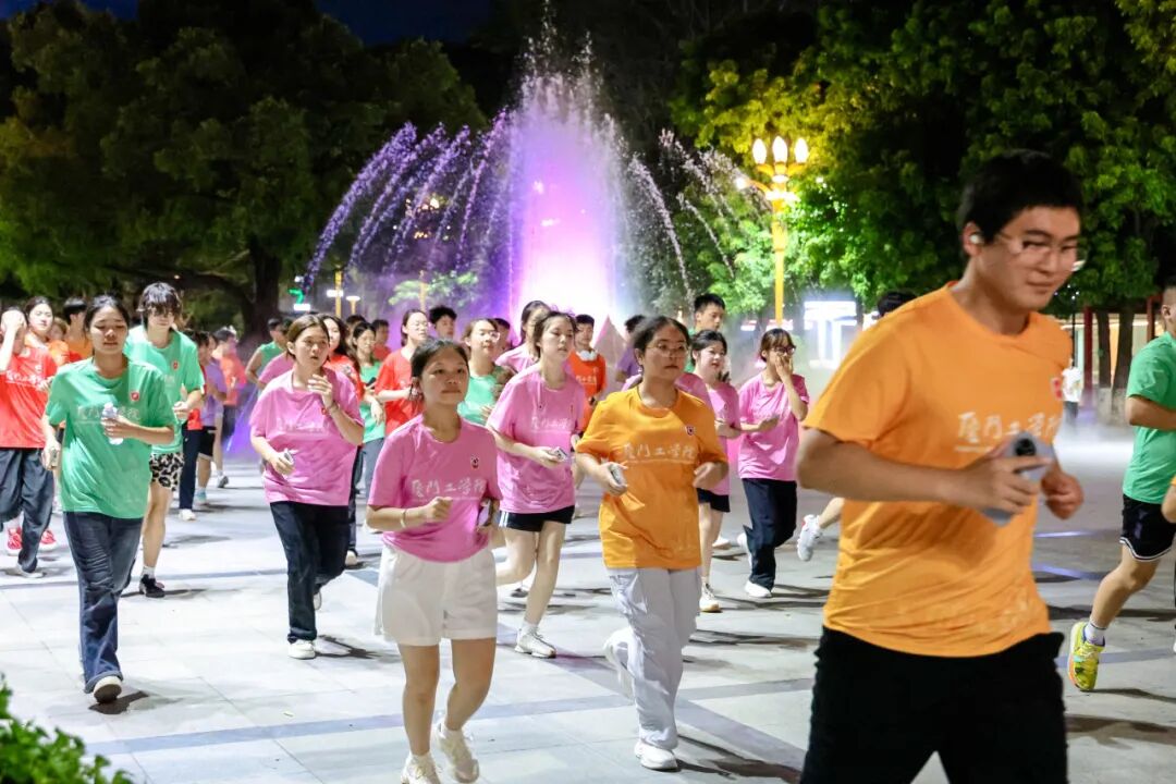 晚上七点左右,在李雄虎副董事长、执行校长慷慨激昂的跑前动员下,我们如潮水般涌出起点。暮色降临,每一个厦工大一学子都奔跑在校园赛道上,穿梭于渐次亮起的路灯之间,图书馆、卓尔园、孔子广场等校园地标在暮色中展现出不同于白天的魅力。