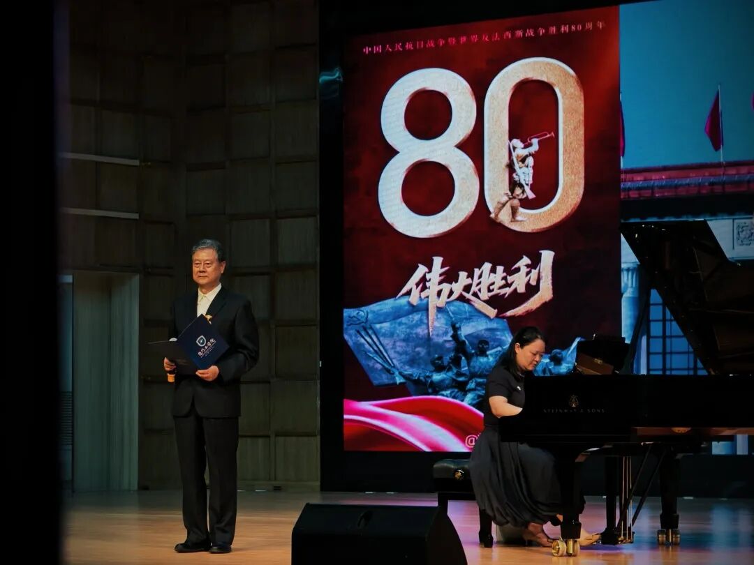 沉甸甸的勋章不仅是光荣的象征,更蕴含着一份特殊的历史见证。其中一枚是来自他母亲、一名抗战军人的“中国人民抗日战争胜利70周年”纪念章,另一枚则是刘志强老师于2024年获颁的“光荣在党50周年”纪念章。当刘志强老师讲述勋章背后的感人故事时,音乐厅内鸦雀无声。