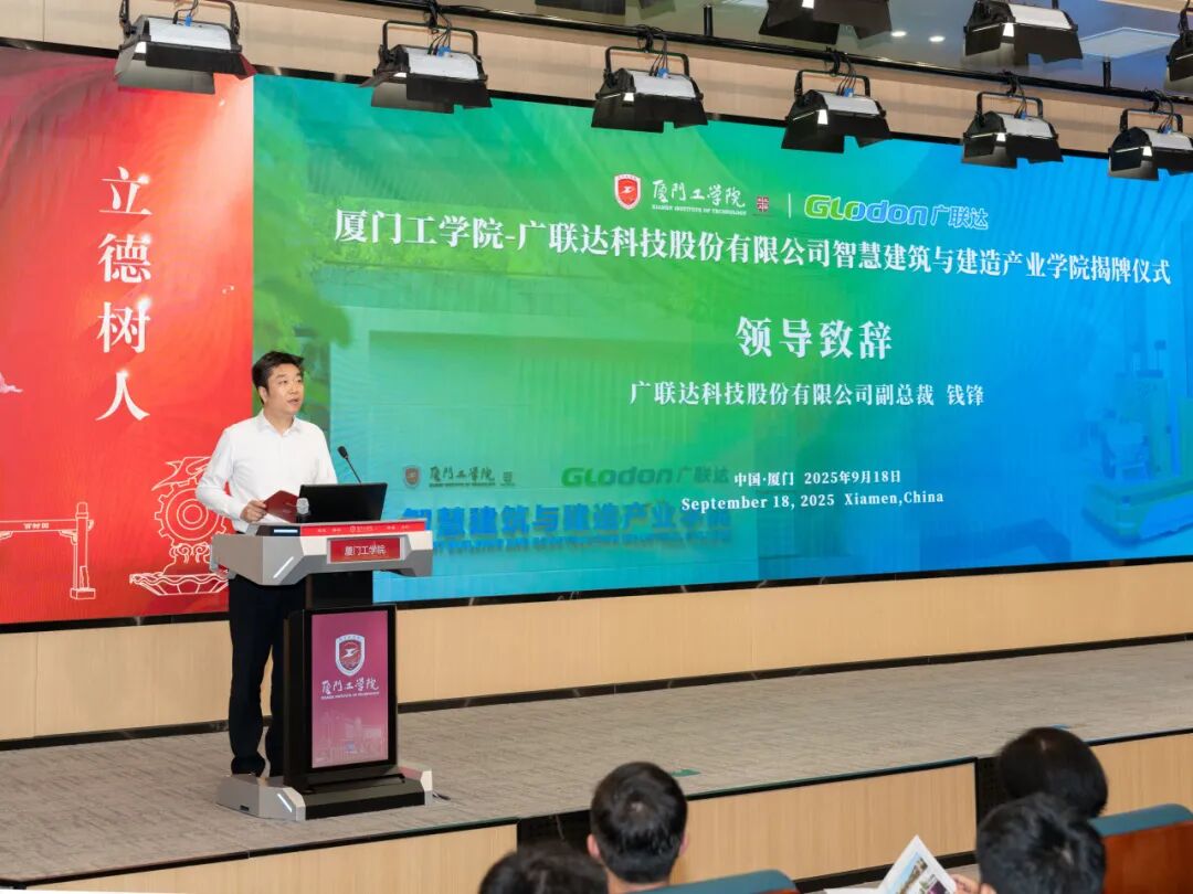 广联达科技股份有限公司副总裁、数字教育事业部总经理钱锋在致辞中谈及:当前建筑行业正朝着绿色化、智能化、工业化方向转型升级,国家对智能建造等领域的人才培养高度重视、政策频出。钱锋强调,智慧建筑与建造产业学院的成立正是为了响应行业变革,深化产教融合,共同培育符合新时代要求的高素质建筑人才,广联达将全力支持产业学院建设,共同打造校企协同育人新典范。