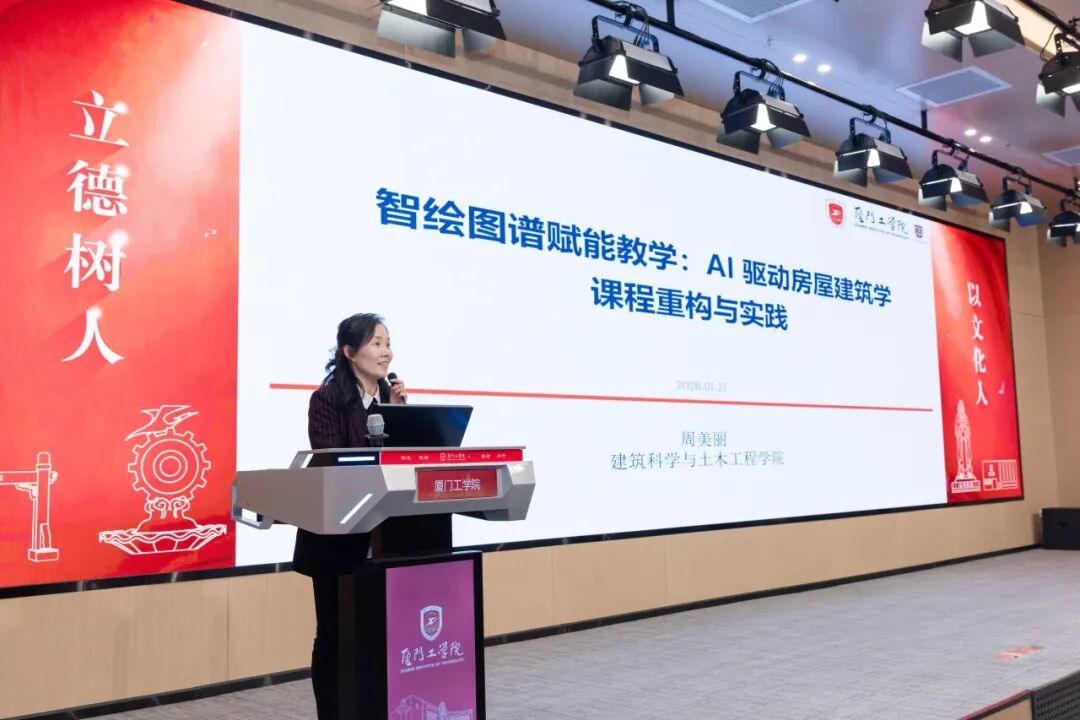 在“人工智能赋能教学”分享环节,迟丹老师以“纪录片课堂遇见 AI”为主题,依托双螺旋教学模式,融合AIGC技术,培育兼具技术素养与人文精神的创作人才;林淑琴老师坚守九年 “以赛促学”,推动教学向数据智能驱动、AI增强型育人升级,实现学生从文案作者到智能创意策展人的蜕变;李程老师以蓝天救援队VI设计项目为案例,分享三阶梯递进+线上线下混合模式的“五步法”教学流程,培育能与AI协同工作的未来设计师;周美丽老师以智绘图谱赋能教学,AI驱动房屋建筑学课程重构,依托知识图谱与六模块闭环,兼顾教师的“教育温度”与“育人智慧”;刘玉玲老师以知识图谱赋能课堂,破解传统教学三重困境,依托知识体系、任务引擎、AI应用重构教学,打造“生-师-元”深度交互的智慧教学新范式。
