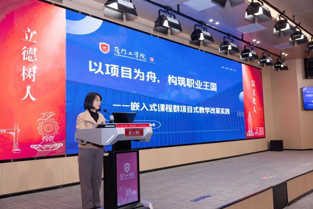 下午的分享从“项目制是高阶教学主课”开始。人工智能学院王若龙老师以2个获奖APP、7天极限开发小程序、5个项目案例诠释AI赋能的从“专业培养”到“项目制”演进的育人实践;机械电气与信息工程学院陈俊秀老师聚焦“智能终端”开发流程,串联六门课程,打造“为用而学”的沉浸式工程实践,构建协同高效的育人共同体;博雅教育与艺术传媒学院郑菁菁老师以双轮驱动逻辑为设计理念,凭项目制教学链接市场,展现多维教改成果,回答产业AI背景下的高阶教学之问;体育学院肖焜老师结合多类课程实践,围绕目标与情境创设,分享体育课项目式教学实践,及以“学—练—赛”体系实现教学综合育人升维。