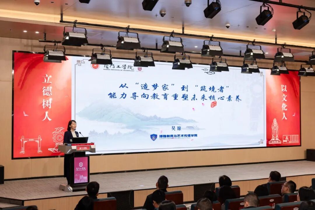 在“大学即学生:以生为本 以生立校”部分,他从理念引领、课程革新、空间营造、AI赋能四大维度,阐释“大学即学生”的内涵,强调大学是学生人格塑造、真理探索的“人生练兵场”。在“大学即教师:以师为魂 以师强校”部分,他提出“教师教育能力(10项)”要求,系统探讨教师思想与能力体系建设路径,着力构建“使命引领、能力支撑、制度保障、文化滋养”的完善教师体系,为学校高质量发展筑牢根基。在“大学即城市:以城为根 以城兴校”部分,学校创新性提出“大学即城市”理念,打破传统办学壁垒,将学校定位为“精致型城市”的核心单元。通过建设现代“精致型”城市式校园,推动城校同频、开放办学,彰显办学特色,实现校地共生共荣。